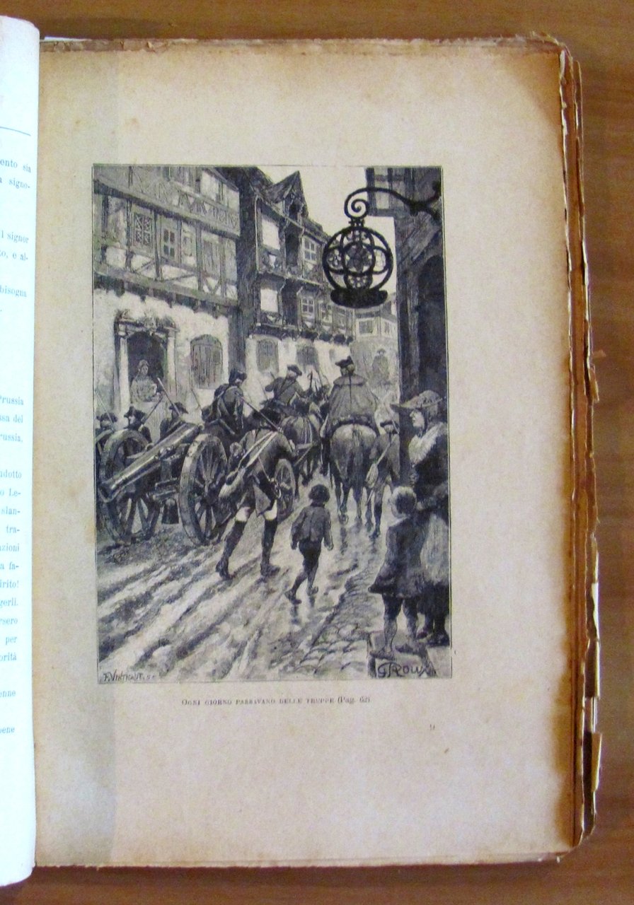 41 illustrazioni in b/n n.t., di cui 6 a piena pagina, di Roux. Editori Brigola & C. - Milano, 1889. Brossura editoriale con rinforzo postumo non originale al dorso. Alcuni piccoli taglietti ai margini esterni di qualche pagina con barbe dovute alla legatura non perfetta pertanto alcune quartine si presentano sciolte alla cerniera. Peraltro pagine fresche e pulite. 19,5x28; pp.212. Raro e complessivamente in Buono stato.