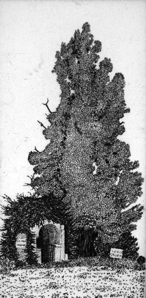 8°; pp. 28 non num.2 su carta delle cartiere Fedrigoni di Arco; con un'acquaforte f.testo sciolta num. e firmata a matita dall'Artista (1932-2009). Brochure edit. con titoli al dorso e al piatto anteriore, edizione tirata a 99 esempl. numerati, oltra a XV num. romana.<BR>(Vedi riproduz.)