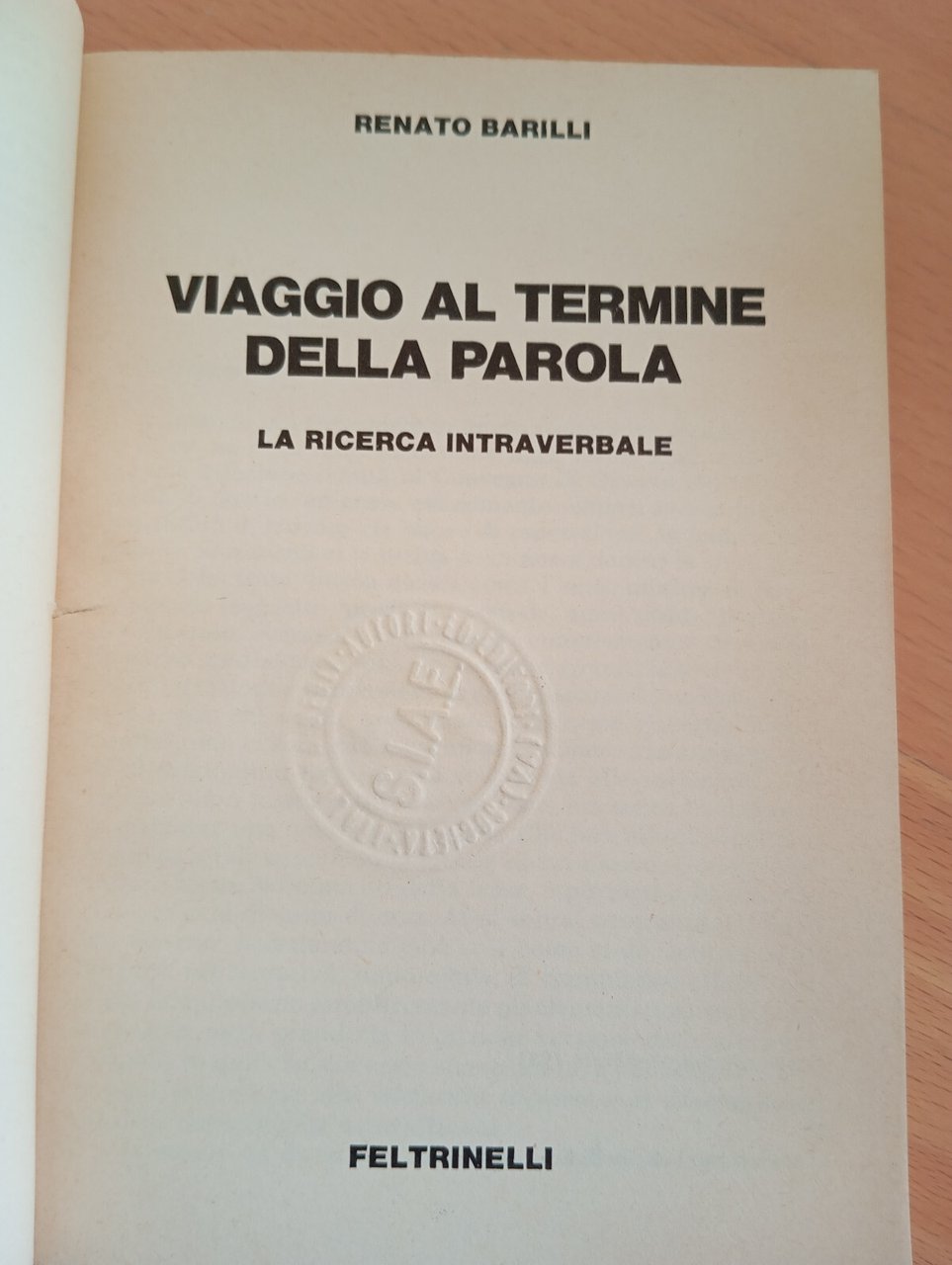 Viaggio al termine della parola, Renato Barilli, Feltrinelli, 1981
