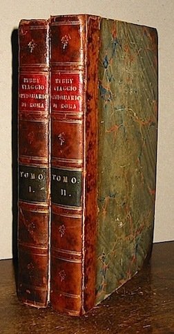 8vo, 2 Voll.; 311(1) pp. con 5 carte rip. e 17 tavv. f.t.; 334 pp. con 7 carte rip. e 13 tavv. f.t. Ottime legature coeve in mz. pelle con fili, piccoli fregi, titolo e numerazione in oro su doppio tassello in pelle al ds. Tagli in leggera coloritura a spruzzo. Cerniere con minime mancanze e leggermente allentate, altrimenti bell’esemplare, assai fresco. Raro. Rossetti, 7357. Olschki, 17660.