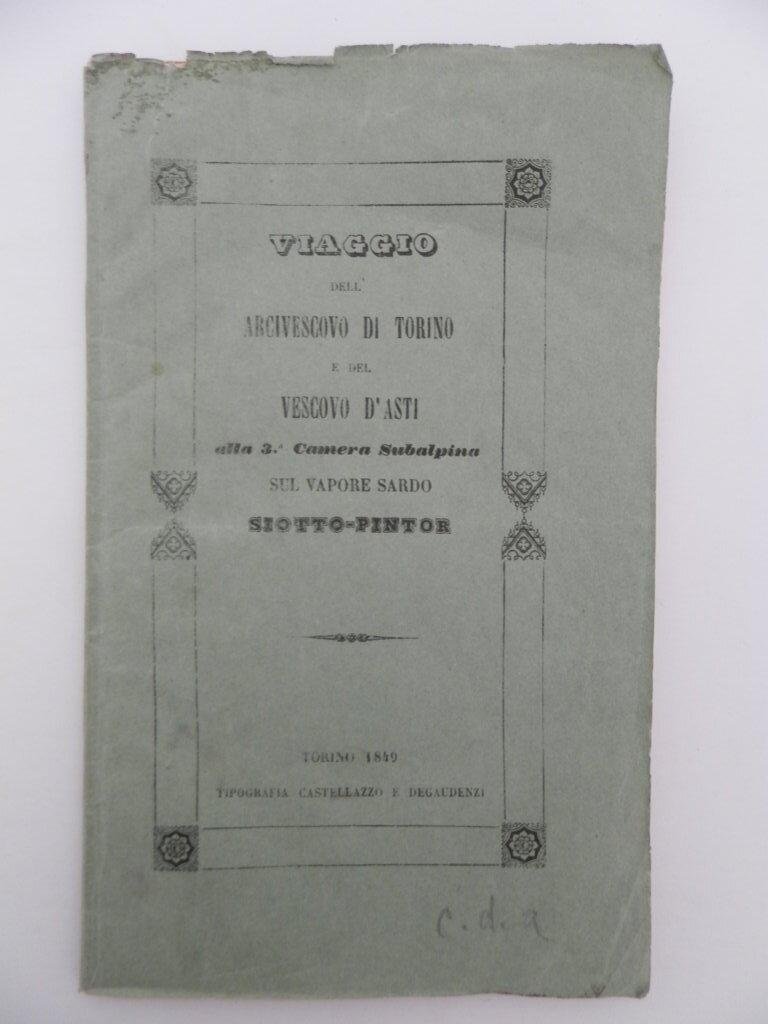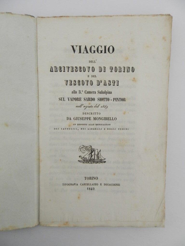 Viaggio dell'arcivescovo di Torino e del Vescovo d'Asti alla 3^ Camera Subalpina sul vapore sardo-Siotto-Pintor nell agosto del 1849