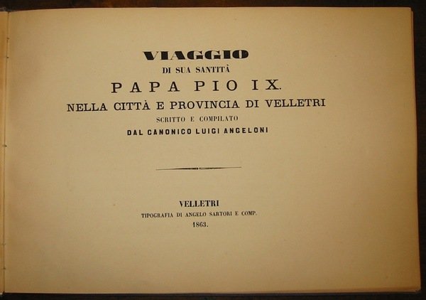 Viaggio di Sua Santità Papa Pio IX nella città e Provincia di Velletri