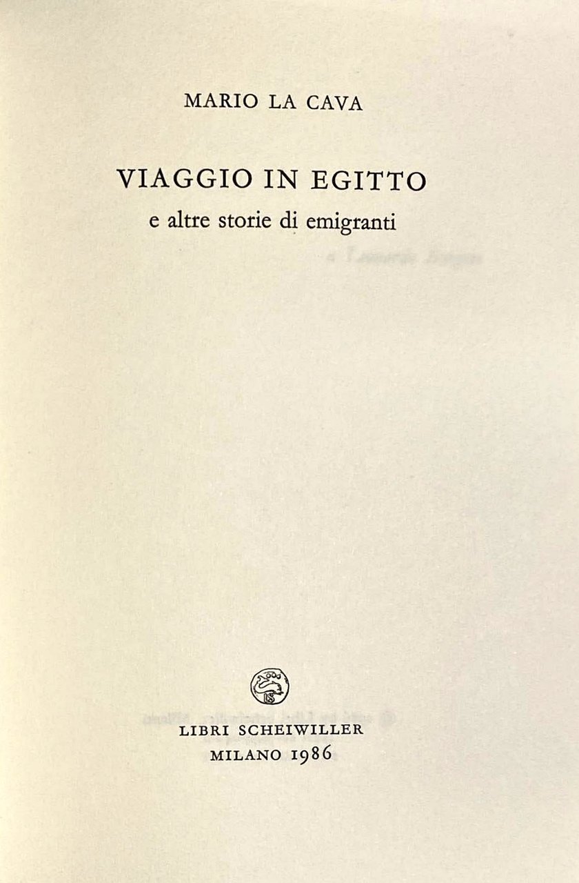 Entra l'emigrazione nella produzione letteraria di Mario La Cava con la raccolta di racconti Viaggio in Egitto e altre storie di emigranti pubblicato da Scheiwiller nel 1986. Quattordici racconti tutti implosi da un boato emigratorio che mette in fuga un popolo, la sua civiltà, la sua staticità. Vanno e vengono gli emigranti di La Cava. Non vorrebbero partire ma devono farlo perché la storia sociale ed economica della loro terra non ha sponde da offrire. E le sponde stanno ormai tutte dall'altra parte. Non partono, però, con il sentimento di dover tornare e, seppure non riescano ad adattarsi all'altrove, scontano l'impossibilità del ritorno adattandosi a vivere come spezzati, senza patria e radici. E lo scrittore assiste, e ci fa assistere, alla fine di un mondo e, implacabile, scava la ferita della sconfitta che genera dolore su dolore.