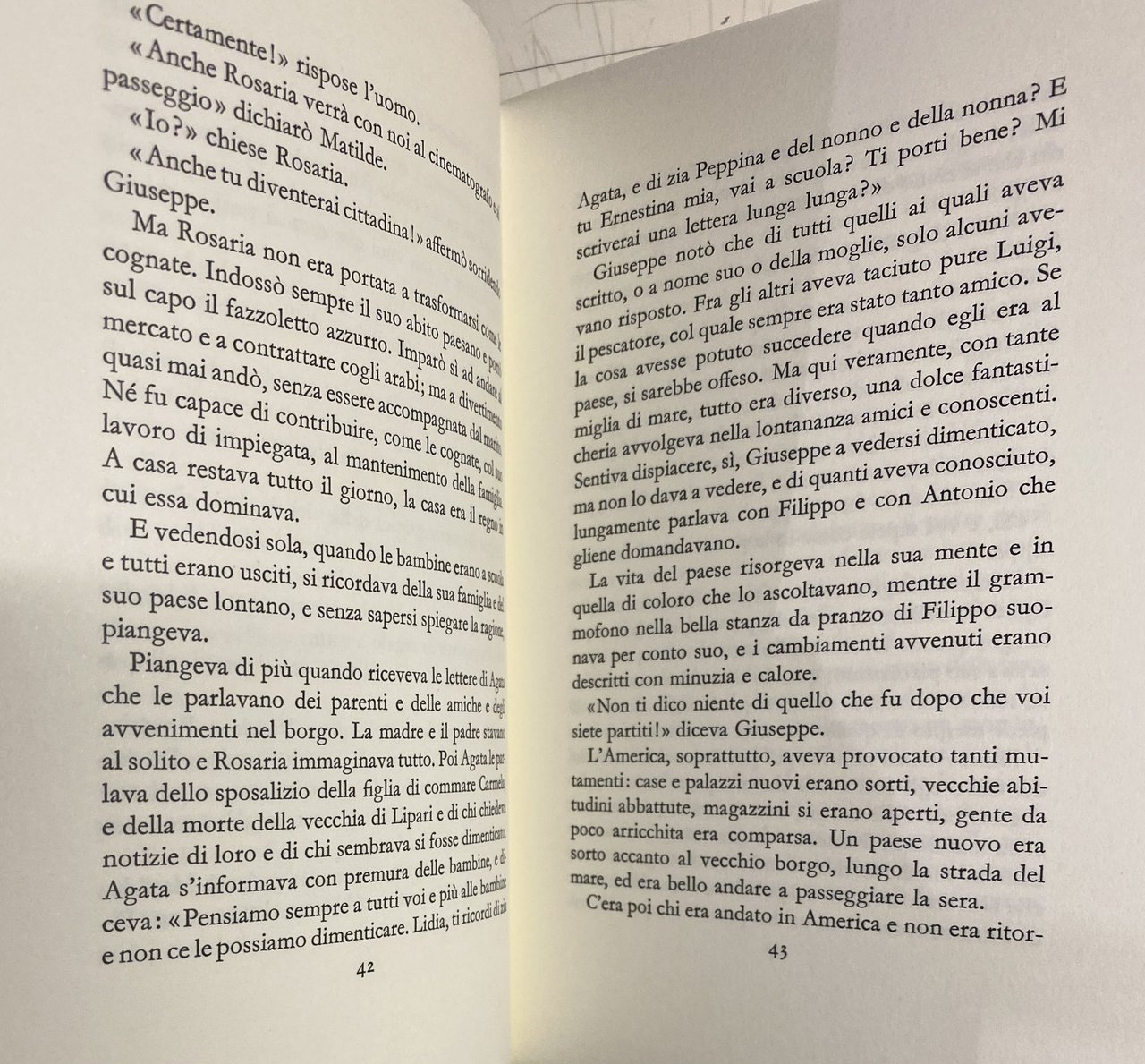 Agata Peppina America amici Anastasia andare Antonio Artemisia Australia bambina bella Bettina bisogno braccia Buenos Aires Cairo Calabria casa Caterina cognate commare Carmela compagni conforto cuore donna Ernesta Ernestina famiglia felice fidanzati figli figliuola Filippo fratelli genitori gente Gigia Giurleo Italia lavoro lettera letto Lidia madre mamma Margherita Mariarosa marito Matilde matrimonio moglie nave occhi Omegna padre paese Paolo parenti parole partenza Pasquale passato pescatore piangeva piccola Pina Portland povera ragazza ricordo Rosaria Giuseppe ritornare Rosa Rosaria Sergio sogno soldi sorelle sposa treno ulivi Valdora Vanda vecchia vestita viaggio Vincenzino Bovalino Locride