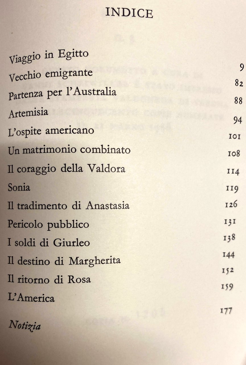 Soggetti: Narrativa, Letteratura italiana, Romanzi, Viaggi, Emigrazione, Emigranti, Africa, Australia, Artemisia, Racconti, Ospite americano, Valdora, Matrimonio, Tradimenti, Italia del Sud, Scrittori calabresi, Corrado Alvaro, Cosenza, Neorealismo, Vecchia Calabria, Narrativa lacaviana, Matriarcato, Provincia, Miseria, Povertà, Libri fuori catalogo, Italian Literature, Novels, Travel, Emigration, Emigrants, Stories, American Guest, Marriage, Cheating, Southern Italy, Calabrian Writers, Neorealism, Lacavian Fiction, Matriarchy, Province, Misery, Poverty, Books out of print, Collezionismo, Edizioni pregiate, Egitto, Stranieri, Lettura, Bestsellers, Racconti di viaggio, Voyage, Collectibles, Valuable editions, Egypt, Foreigners, Reading, Travel stories