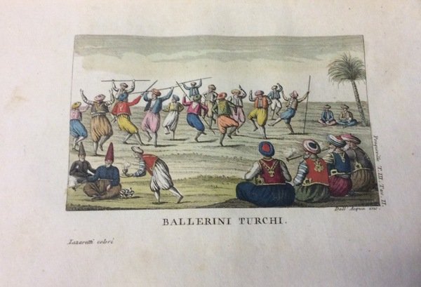 In-16 (mm. 180x108), 4 volumi, mz. pelle, pp. XIV,253; 274,(2); 334,(2); 274,(2); molto ben illustrato (come da Indice) da complessive 18 tavole inc. in rame e colorate a mano, che raffigurano abitanti e personaggi dei vari paesi, nei loro tipici costumi. L'opera comprende la descrizione de' paesi, le loro produzioni, costumi, usi, malattie e commercio degli abitanti; con alcuni confronti fra lo stato attuale della Grecia e ciò che fu anticamente (Morea o Peloponneso).Volumi della Collana Raccolta di viaggi dopo quelli di Cook eseguiti tanto per mare quanto per terra, e non pubblicati finora in lingua italiana. Solo qualche lieve fiorit.; il 3° vol. con macchia margin. sulle ultime 25 carte, altrimenti esemplare con barbe, ben conservato.