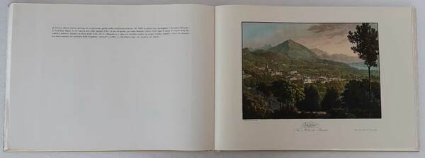 Quarto oblungo (31 x 43,5 cm). Pagine non numerate. Con 24 incisioni a colori di vedute applicate. Legatura editoriale in finta pelle con profili dei piatti decorati con incisioni in oro e incisioni in oro al dorso, carta in barbe al taglio, copia anastatica del volume del 1823, volume composto a mano e impresso da Luigi Maestri, stampa delle tavole in fotolito su carta appositamente fabbricata dalla Cartiera Ventura di Como. Volume in ottimo stato, minimi segni d’uso alla coperta.