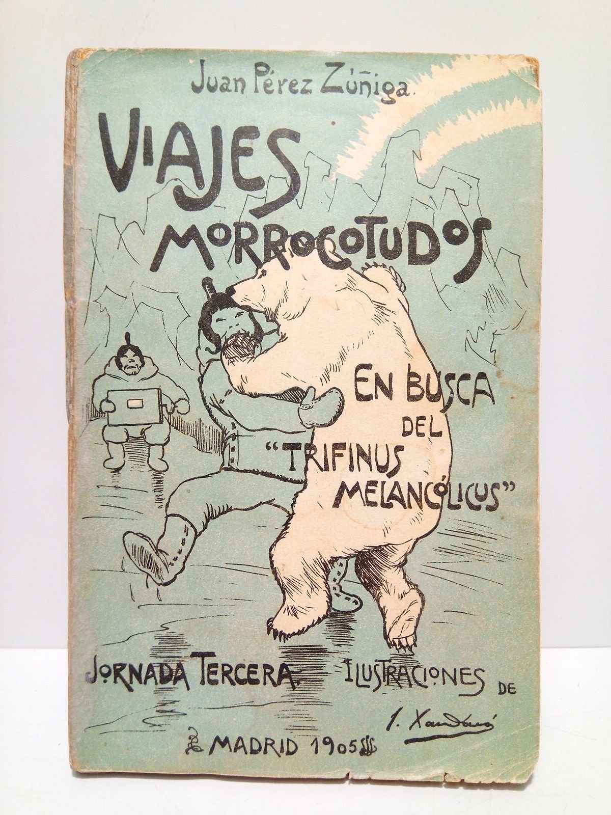 4ª Ed.- Madrid: Imp. de los Hijos de M. G. Hernández, 1905.- Jornada III (147 p., [2 h.]): Ilustraciones entre el texto; 8º (18,3 x 12,3 cm); Cubierta anterior plenamente ilustrada por Xaudaró.* Cubiertas algo fatigadas, falta casi toda la lomera que está reforzada y tiene una firma manuscrita sobre el título en la portada. Los viajes Morrocotudos se dividieron en cuatro jornadas, es decir una jornada por cada volumen, formando en conjunto 4 tomos que se pueden ofrecer sueltos al estar compuestos por pequeños relatos totalmente independientes. Nosotros ofrecemos por tanto el tomo tercero. LITERATURA Y FILOSOFÍA ESPAÑOLAS DE LOS SIGLOS XIX-XXI Y SU HISTORIA EN GENERAL