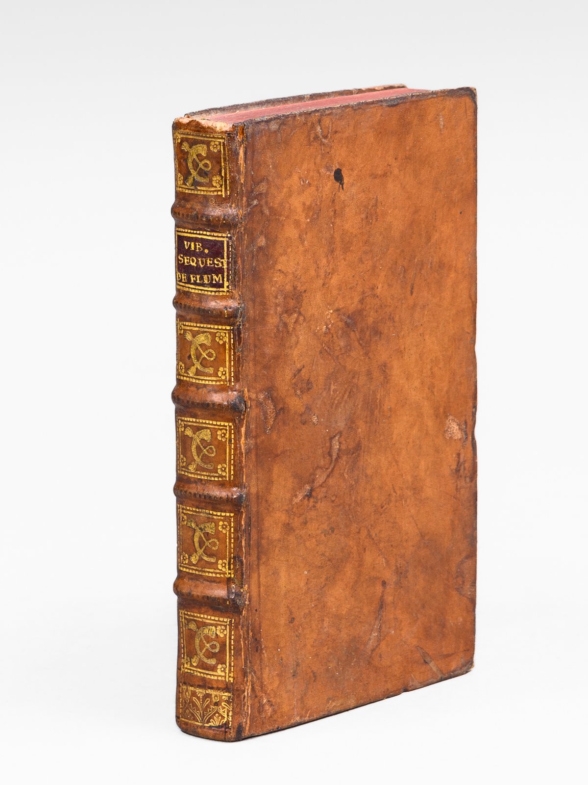 1 vol. petit in-8 reliure de l'époque plein veau brun, dos à 5 nerfs orné (fer au cor de chasse), Apud Arnoldum Willis bibliopolam [Arnold Willis ], Roterodami [ Rotterdam ], 1711, 30 ff., 295 pp. Attribué au compilateur latin du IVe ou Ve siècle Vibius Sequester, l'ouvrage est composé de listes alphabétiques de noms géographiques trouvés chez des poètes romains, tout particulièrement dans Virgile, Ovide et Lucain. Il s'agit de noms de cours d'eau, de sources, de lacs, de forêts, de marais, de montagnes et de peuples. La présente édition, établie par le philologue Franciscus Hesselius (1680-1746) est rare et estimée. Bon état (mq. de cuir en coiffe sup., coupes lég. frottées, bon exemplaire par ailleurs). Graesse, VI, 2, 296