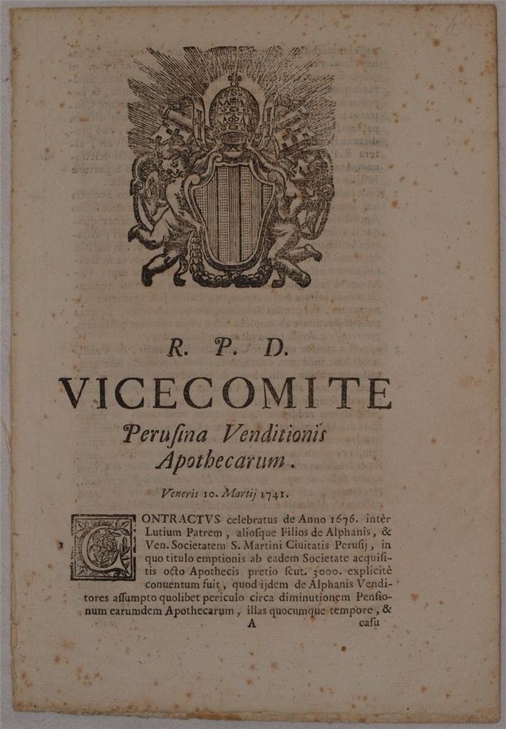 VICECOMITE PERUSINA VENDITIONIS APOTHECARUM VENERIS 10 MARTII 1741