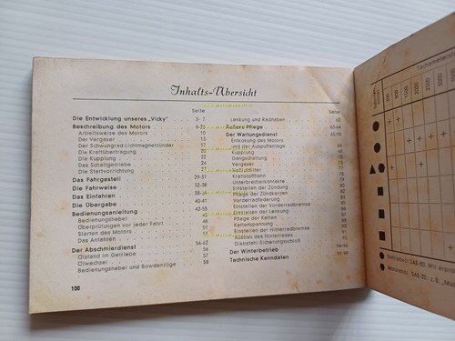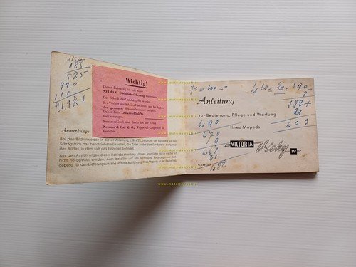 Victoria 50 Vicky IV 1956 manuale uso manutenzione originale TESTO TEDESCO