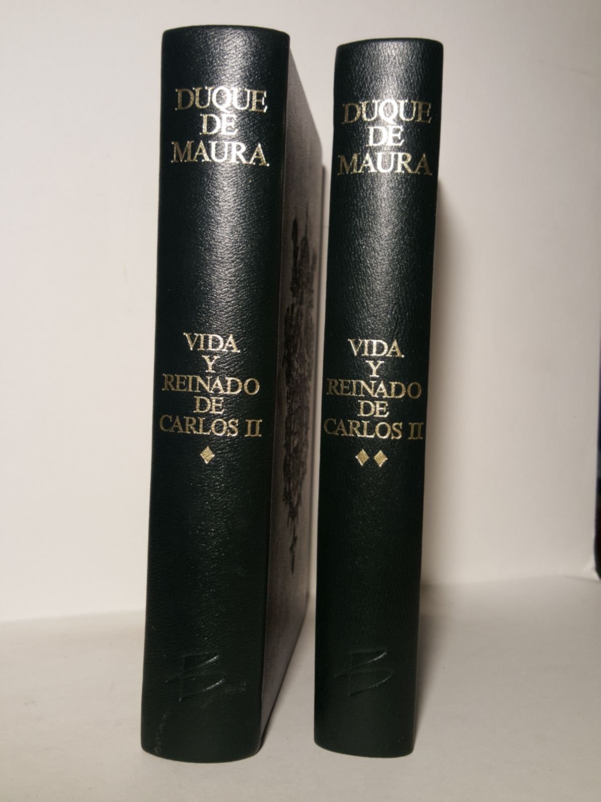 EDICION NO VENAL, LIMITADA Y NUMERADA.- [Madrid]: Edita Banesto y Fundación Antonio Maura (Imp. en Móstoles, prov. de Madrid, por los talleres gráficos de Unigraf, S. A.), 1989.- 2 VOLS. (387 p., [1 h.]; 346 p., [2 h.]): Profusión de ilustraciones a todo color a partir de cuadros de artistas de la época, sobrepuestos a modo de cromos en las hojas fuera de texto; 4º (24,7 x 17,3 cm); Excelente impresión en papel de hilo verjurado de la Casa Guarro; Enc. en Pleno Curpiel (simil piel chagrén) de color verde intenso, lomo dorado y planchas en seco con el escudo real en las tapas anteriores.- Edición no venal de 500 ejemplares, repartidos de la siguiente forma: seis ejemplares ordenados de la A a la F y cuatrocientos noventa y cuatro numerados del 1 al 494. Todos magníficamente impresos sobre papel de hilo verjurado de la Casa Guarro. Este que ofrecemos es el Nº 70.- RARA EDICION DE LUJO.* En excelente estado de conservación, como nuevo. Esta obra en tres tomos es complementaria del famoso libro del autor, titulado "CARLOS II Y SU CORTE" en 2 tomos, que por causa de la Primera Guerra Mundial no pudo concluir el Autor. HISTORIA DEL SIGLO DE ORO ESPAÑOL