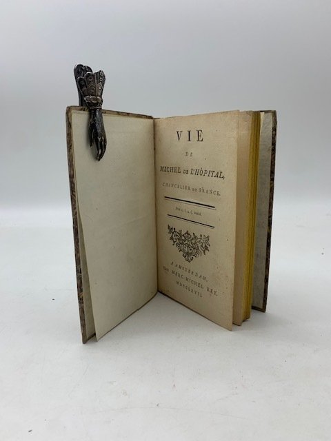 In 16 (cm 10 x 16,5), pp. 140. Legatura ottocentesca in mezza pelle. Seconda edizione (edizione originale: Parigi, 1764) di questa biografia di Michel de l'Hopital, scrittore e politico francese del Sedicesimo secolo, pubblicata anonima ma scritta da Jean Simon Levesque de Pouilly. Barbier, IV, 990.