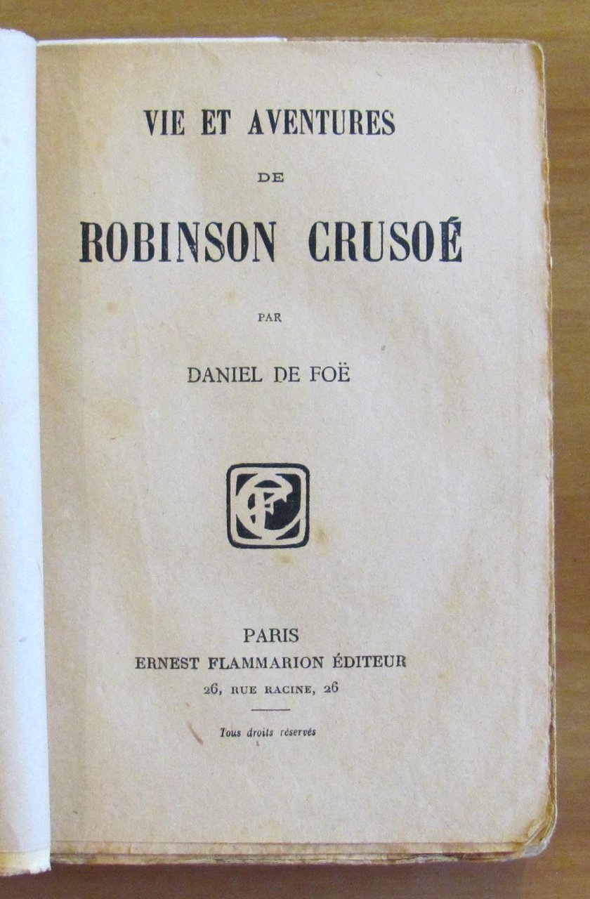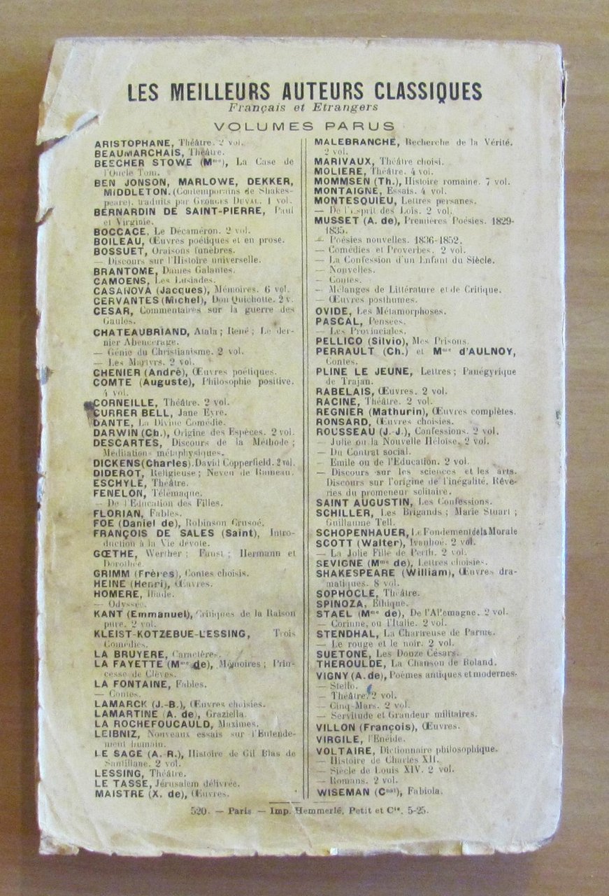 Editeur Ernest Flammarion - Paris, 1925 ca. Brossura editoriale con scritte a penna in copertina e usure del tempo alla brossura. Macchia di vecchio inchiostro ad una pagina. passante al solo taglio esterno delle 4 successive. Peraltro interno molto fresco. 12x18,5; pp.246. Raro, Accettabile. , Buono (Good)