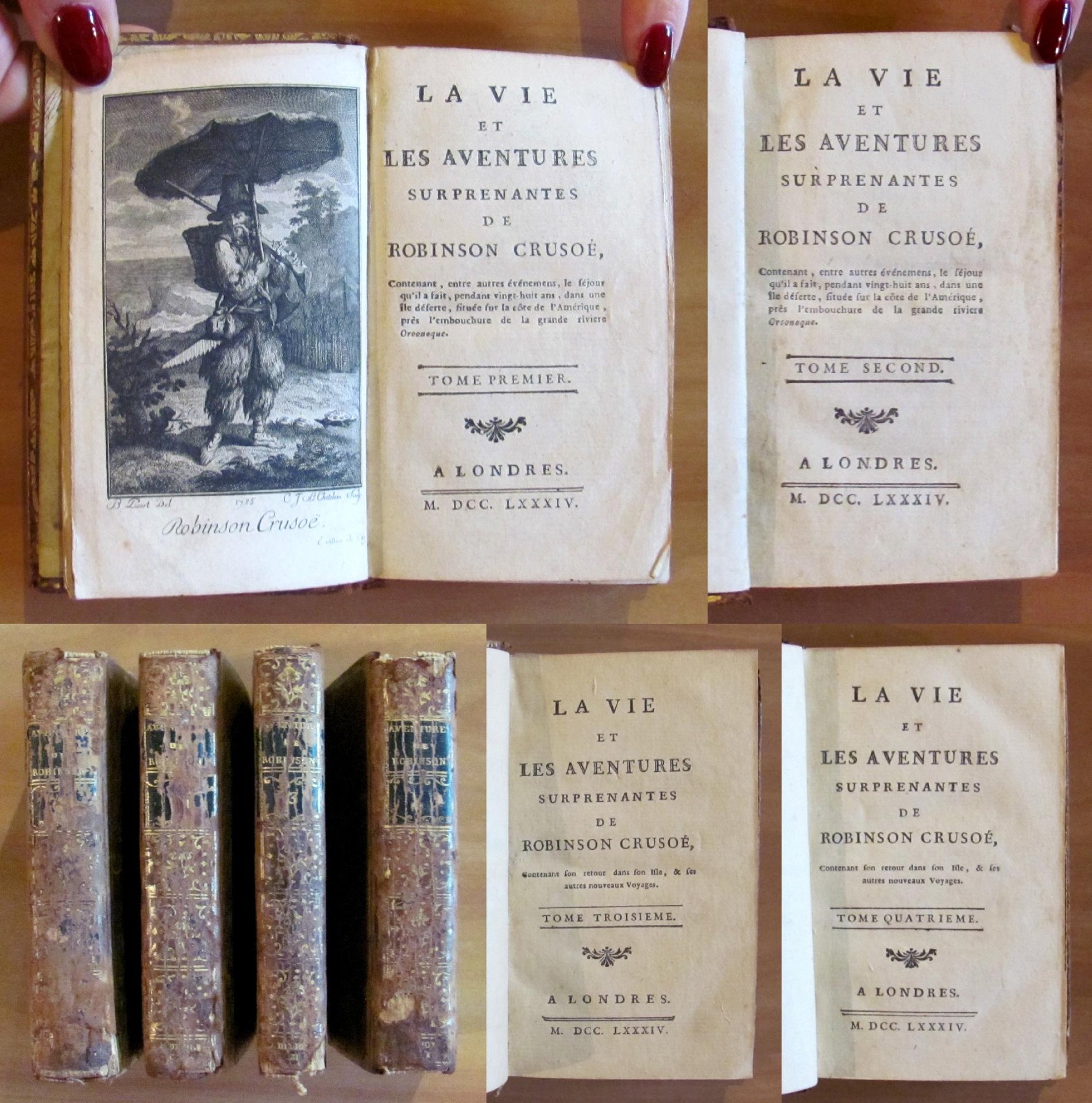 Vie et Aventures Surprenantes de ROBINSON CRUSOE in 4 Volumi Completo, 1784