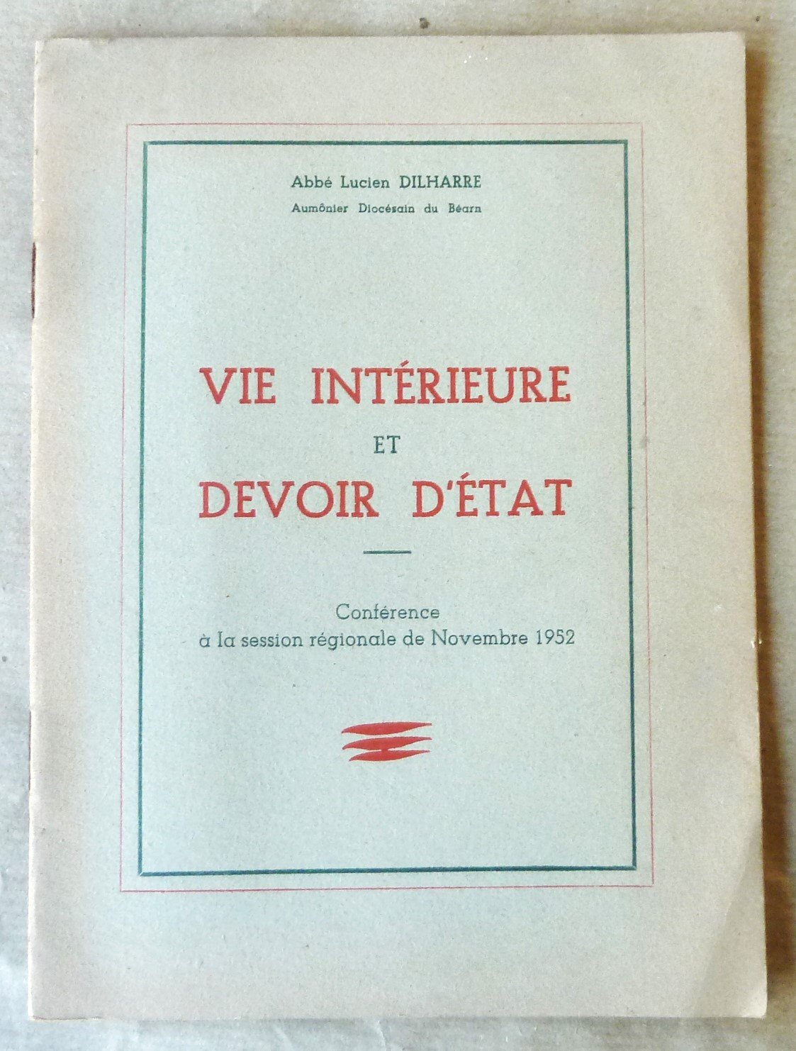 Vie Intérieure et Devoir D'Etat. Conférence à la session régionale de novembre 1952