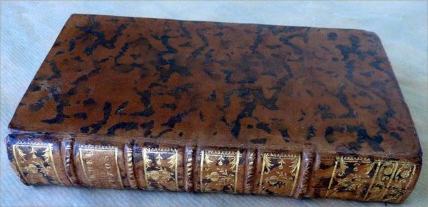 Un volume de format in 12 de 12 pp.; 384 pp.; reliure de l'époque en pleine basane marbrée, blonde, dos à 5 nerfs richement ornéde caissons dorés; titre doré; tranches entièrement mouchetées; Petit départ de fente à une charnière, coiffe supérieure usée. Manque angulaire sans manque de texte à la page 1; charmant exemplaire malgré tout, très frais.Voir les photos.