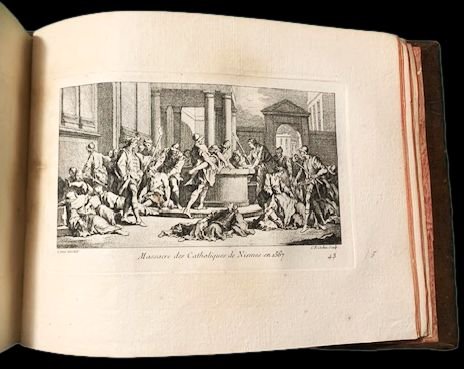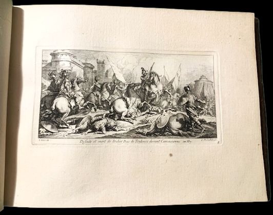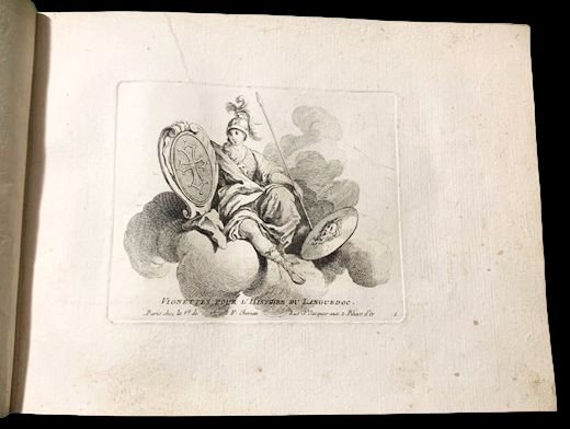 In oblungo; 53 cc. compreso il frontespizio. Elegante legatura in piena pelle spugnata con titolo in oro al dorso su fascetta in pelle. Ricchissimi fregi dorati ai tasselli. Tagli rossi. Vecchia nota bibliografica a matita alla prima carta bianca che identifica lopera come appartenente ad un noto critico darte italiano. Alcune tavole leggermente ed uniformemente brunite nel margine esterno, fuori dalla zona di battuta e per il resto esemplare in ottime condizioni di conservazione, stampato su carta di ottima qualità. Prima ed unica edizione di questa suite di 52 tavole che ripercorrono la storia della Linguadoc opera del celebre pittore, incisore, disegnatore e scrittore francese, Charles-Nicolas Cochin (Parigi, 22 febbraio 1715 Parigi, 29 aprile 1790). Appartenente ad una nobile famiglia di incisori attivi fin dal XVII° secolo, apprese larte incisoria dal padre, Charles-Nicolas Cochin il Vecchio (16881754) noto per le sue riproduzioni di quadri di Chardin, Watteau, Nicolas Lancret e attivo per il Cabinet du Roi. Nel 1730, Cochin entrò a far parte del gruppo dei Gobelins guidato da Charles Parrocel. Cochin divenne celebre per la sua opera Menus-plaisirs. A partire dal 1737 venne chiamato a dal Re Luigi XV per occuparsi delle commemorazioni fissando le feste e gli avvenimenti in stampe e disegni e dedicandosi, contemporaneamente, anche a realizzare diversi ritratti e a scrivere alcuni noti trattati darte. Nel 1749 compì un viaggio in Italia accompagnando larchitetto Jacques-Germain Soufflot, fratello di Madame de Pompadour. Proprio da questa esperienza, Cochin trasse lispirazione per pubblicare, insieme a Bellicard, nel 1753, una delle sue opere più note, le Osservazioni sulle antichità della città di Herculaneum. Per i suoi servigi, Luigi XV concesse allartista la patente di nobiltà e liscrizione allOrdine di San Michele. La forte influenza del suo viaggio in Italia, raccontato anche nella sua opera Vojage dItalie gli lasciarono unenorme suggestione avvicinado la sua arte ai classici dellantichità e facendone uno dei precursori del neoclassicismo. Lopera ripercorre la storia del territorio della linguadoc dalla nascita di Roma alla battaglia di Castelnaudary del 1632. Esemplare in buone-ottime condizioni di conservazione.