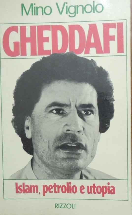 Mino Vignolo, Gheddafi, Rizzoli Editore, Milano 1982, prima ed., pp. 198, ill. b.n., cm 22, br. ed. Sottotilolo alla prima di copertina: Islam, petrolio e utopia. Minime fioriture ai tagli, uniforme brunitura della carta, ma nel complesso buona copia.