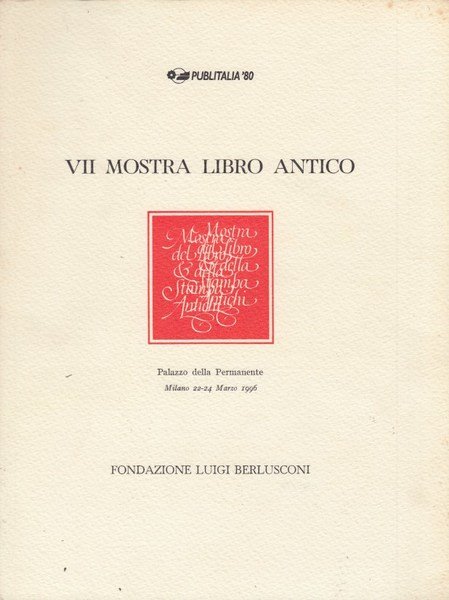 In-4 (Cm 28 x 21), oltre 200 pp. non numerate con indicazioni di librerie antiquaria partecipanti alla mostra e pubblicità. Volume composto con caratteri monotype elzeviriani, impaginato e stampato in quinto de' stampi dalla tipografia campi su carta palatina delle cartiere Miliani di Fabriano nel mese di Marzo 1996. Macchiolina alla brossura anteriore. OTTIMO