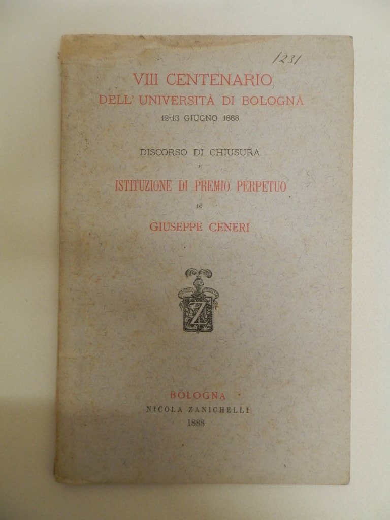 VIII centenario dell'Università di Bologna, giugno 1888. Discorso di chiusura e istituzione di premio perpetuo