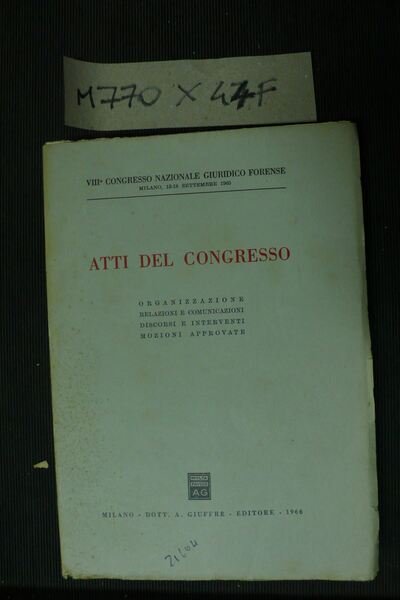 Atti del Congresso svoltosi a Milano, 13-18 settembre 1965 - DETTAGLIO DELLE CONDIZIONI : Esemplare parzialmente intonso; piccolo strappo al dorso; codice scritto a penna al piatto; lievi fioriture e strappetti marginali in coperta - (44f).