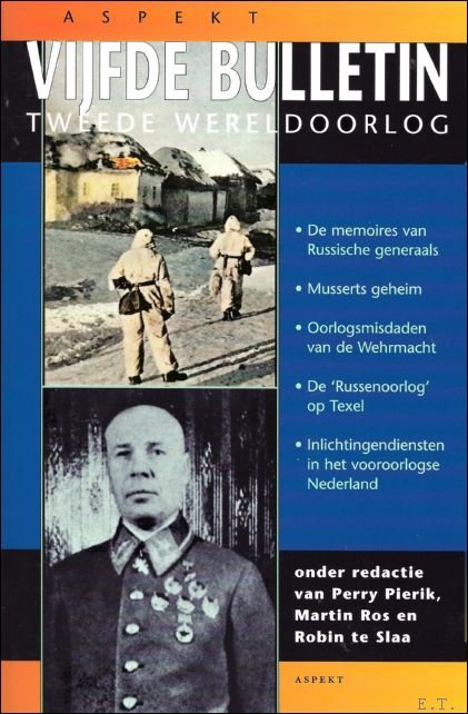 Paperback, 229 pagina's, Nederlands, 235 x 155 mm, boek in prima staat, met illustraties en foto's in z/w,. ISBN 9789059111769. Het vijfde deel van het Bulletin Tweede Wereldoorlog bevat wederom tal van verschillende bijdragen. Jan Meyers beschrijft de bizarre inhoud van de brief die de gedetineerde Mussert in november 1945 aan ministerpresident Schermerhorn schreef. De historicus Jan Nijdam belicht de wonderlijke levensloop van Jan Baars. Deze vooroorlogse fascistenleider verrichte tijdens de bezetting moedig verzetswerk en verzeilde na de oorlog in de schimmige wereld van inlichtingendiensten. Ab Caransa schetst op aangrijpende wijze de laatste maanden van zijn gevangenschap in een subkamp van Auschwitz (Gleiwitz IV) en daaropvolgende dodenmars in januari 1945. Onder de titel 'Opa war kein M rder' staat de historicus C.E.H.J. Verhoef stil bij de traumatische omgang in Duitsland en Oostenrijk met de misdaden van de Wehrmacht in de Tweede Wereldoorlog. Jet van Swieten doet verslag van de 'Russenoorlog' op Texel waar de in Duitse dienst getreden Georgi rs een maand voor de capitulatie in opstand kwamen. In zijn artikel 'Onder de banieren van het Rode Leger' besteedt Perry Pierik uitvoerig aandacht aan de memoires van Russische militairen uit de Tweede Wereldoorlog. J.G. Kikkert beschrijft ten slotte op boeiende wijze de werkzaamheden van verschillende inlichtingendiensten in het vooroorlogse Nederland. Het Bulletin bevat nog diverse andere bijdragen waaronder het vaste overzichtsartikel 'De Lange Schaduw van een oorlog'. In de vier voorgaande delen van het Bulletin Tweede Wereldoorlog werd onder meer aandacht besteed aan: Albert Speer en de holocaust, Colijn en zijn fascistische bewonderaars, de Sinterklaasrazzia in Haarlem, de Mussert- Garde, Friedrich Weinreb, film in het Derde Rijk, generaal Vlassov en zijn leger, de slag om de Ginkelse heide, de diplomatie van de Nieuwe Orde, de Moslim-divisie Handschar, het Delftse studentenverzet, het protectoraat Bohemen en Moravi , Marinus van der Lubbe, het Bezemfascisme, Nederland en de dreiging van chemische oorlogsvoering, operatie 'Wintersgewitter', volkskunde in het Derde Rijk en Bernards geheime bezoek aan Argentini .