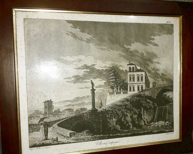 Veduta incisa all'acquatinta da un soggetto dipinto da Gaspare Galliari. Centimetri all'immagine 43x34 più i margini, incisione montata su cornice moderna. Alcune leggere fioriture sparse. -(Luigi Rados. Parma, 19 ottobre 1773 – Milano, 1840, è stato un incisore e pittore italiano).