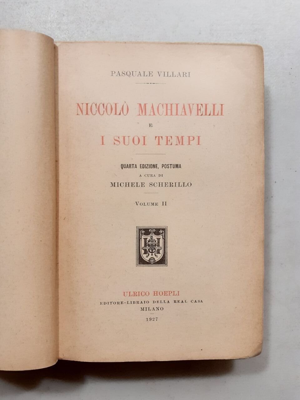 Villari, NICCOLÒ MACHIAVELLI E I SUOI TEMPI vol. secondo,Hoepli 1927