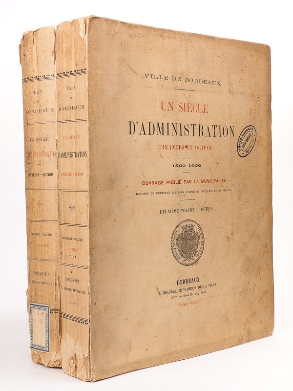 Ville de Bordeaux. Un siècle d'Administration. Finances et Octroi. 1800- 1900 (2 Tomes - Complet). Tome I : Finance ; Tome II : Octroi