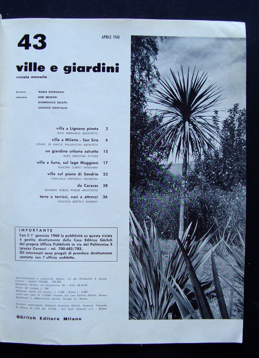 ville e giardini rivista di Architettura Arredamento numero 43 aprile 1960