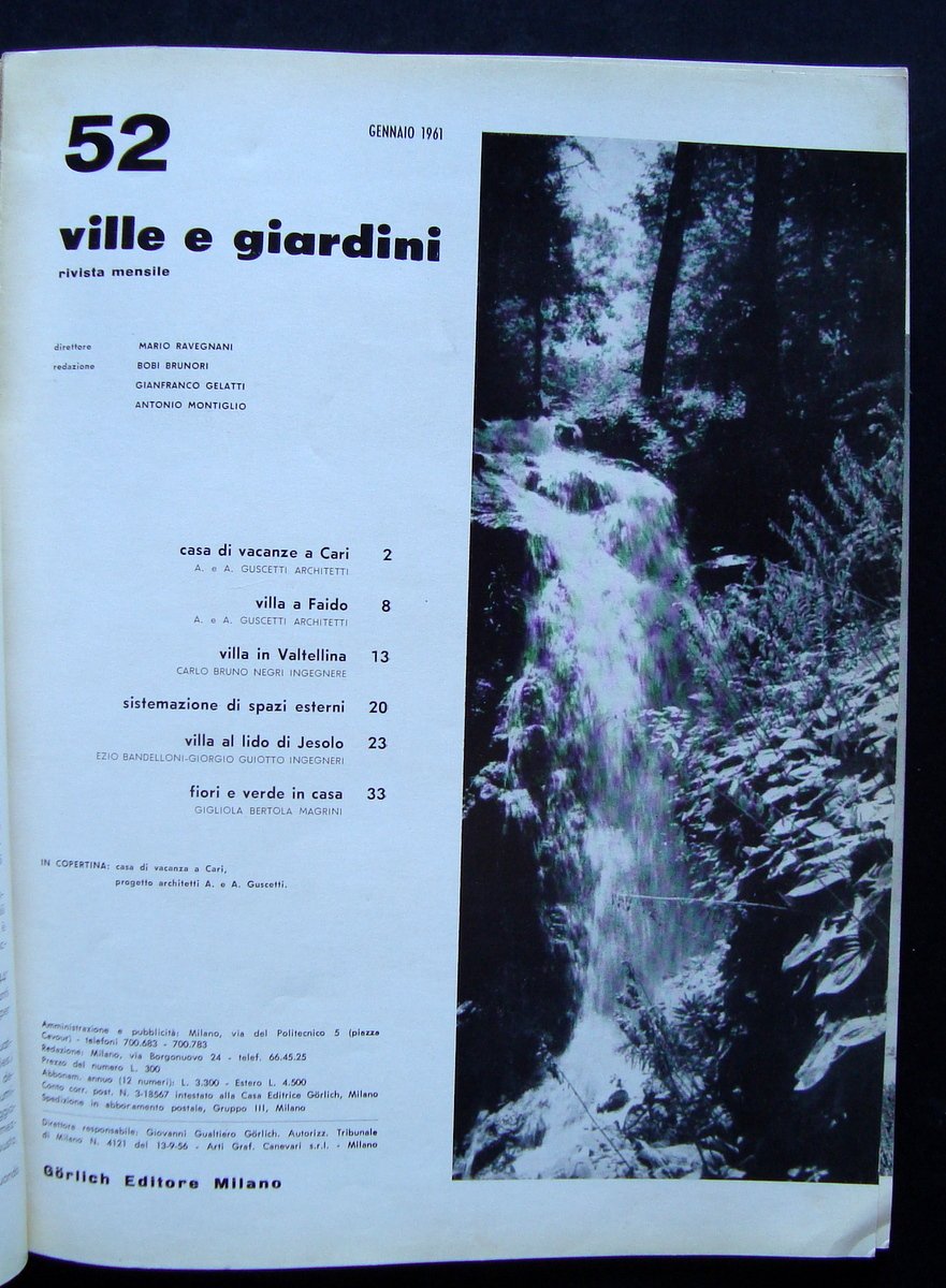 ville e giardini rivista di Architettura Arredamento numero 52 Gennaio 1961