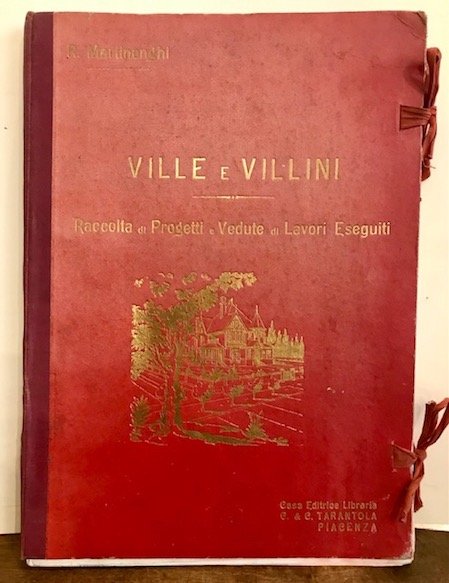 Folio (cm. 36), frontespizio e 103 tavole. Fogli sciolti entro cartella editoriale in mz. tela con titoli ed illustrazioni in oro al piatto anteriore. Lacci di chiusura. Esemplare in ottimo stato di conservazione. Non comune. Provenienza: collezione Moretti, Roma (timbretto ex libris al frontespizio). In ogni tavola un disegno di villa con pianta relativa, indicazione del progettista e del luogo.