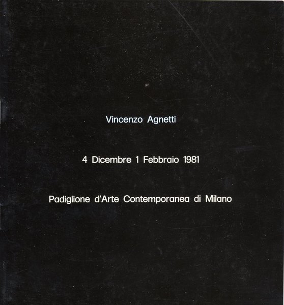 Testi: Agnetti Vincenzo. pagg. 16; COL e BN; rileg. punto metallico. Editore: Padiglione d'Arte Contemporanea, Milano, 1980.
