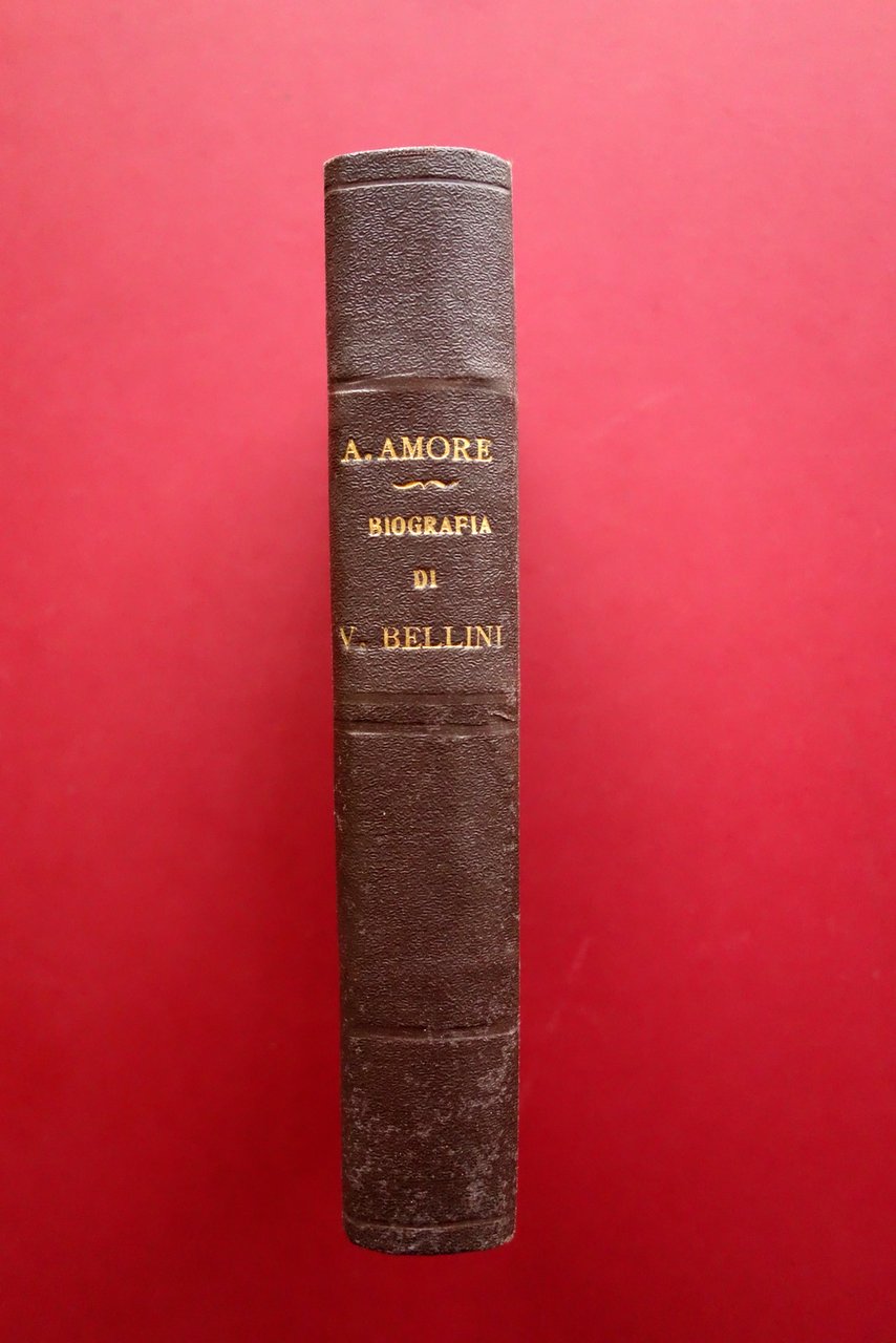 Antonino Amore, Vincenzo Bellini vita studi e ricerche Niccolò Giannotta, Catania 1894; cm 19x12; pp. XVI-480; legatura d'epoca in tutta tela con titolo impresso in oro al dorso. Condizioni di conservazione Buone condizioni con tracce d'uso. Interni buoni con leggero foxing; pp. 369-480 con lievi marginali accenni di ingiallimento dovuti al tipo di carta. Margine inferiore del frontespizio con una piccola leggera abrasione (vecchia rimozione di ex libris del precedente proprietario). SETT232.L24502 N