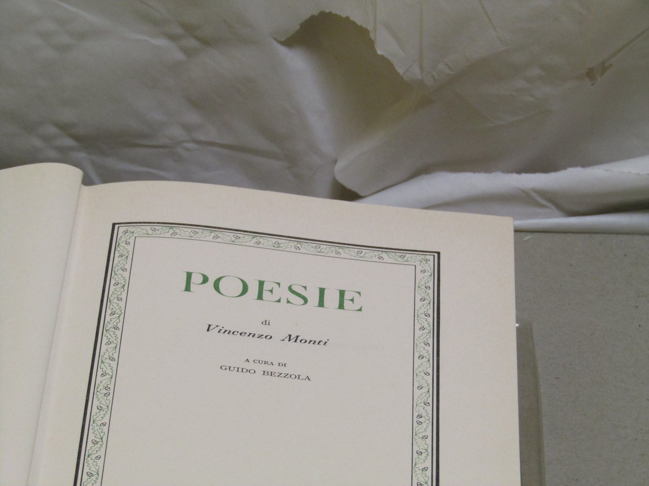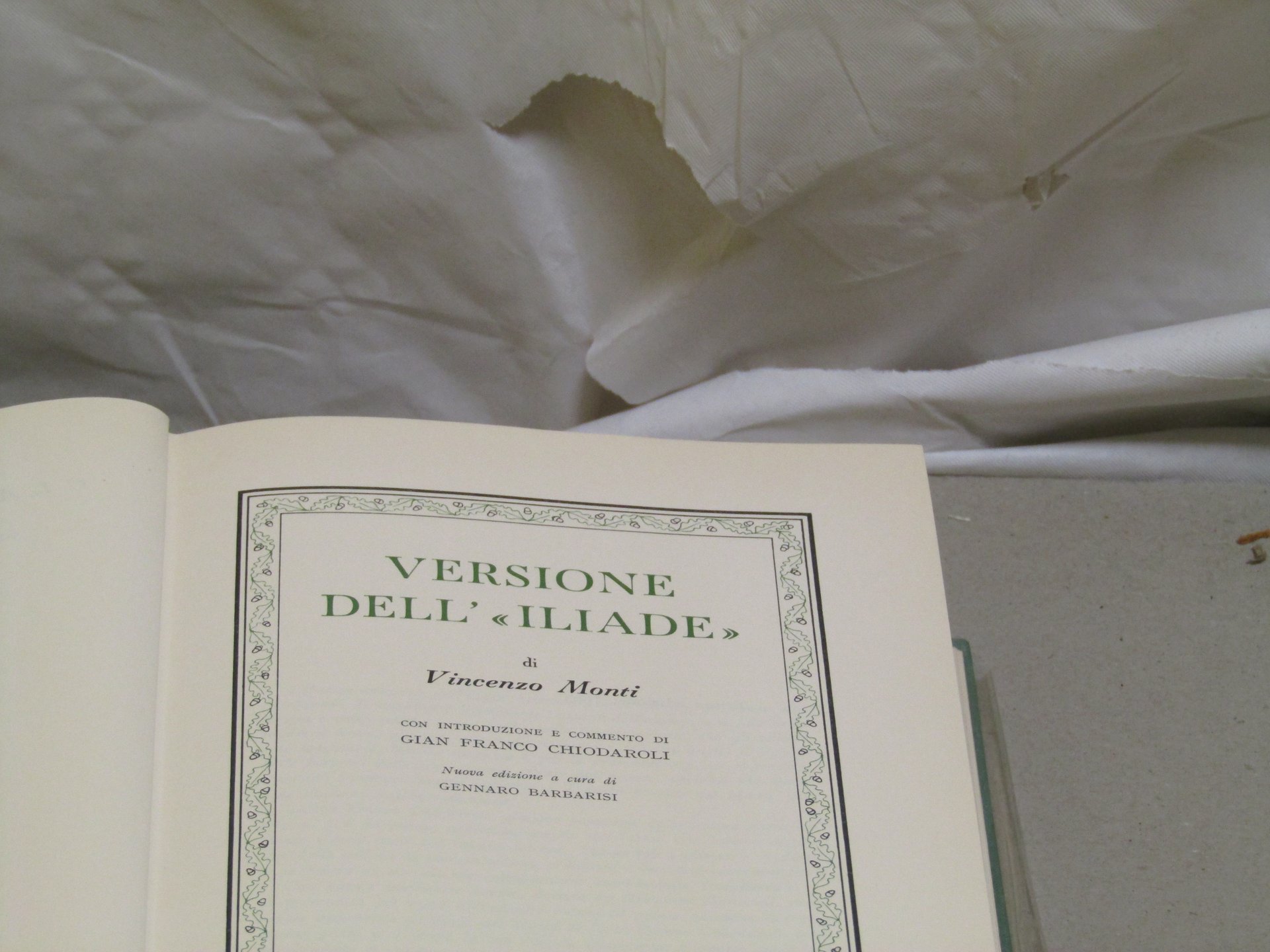 Vincenzo Monti - Gian Franco Chiodaroli. Vincenzo Monti - Gian Franco Chiodaroli. Versione dell"Iliade"- Poesie.. s. Benigno Cavanese - Torino., Unione tipografico - editrice torinese. 1971-1974 italiano, in ottavo pp.855 - 799 Versione dell'Iliade con introduzione di gian Franco Chiodaroli - Poesia a cura di Guido Bezzola. Leggeri segni di usura sull'acetato del primo volume.