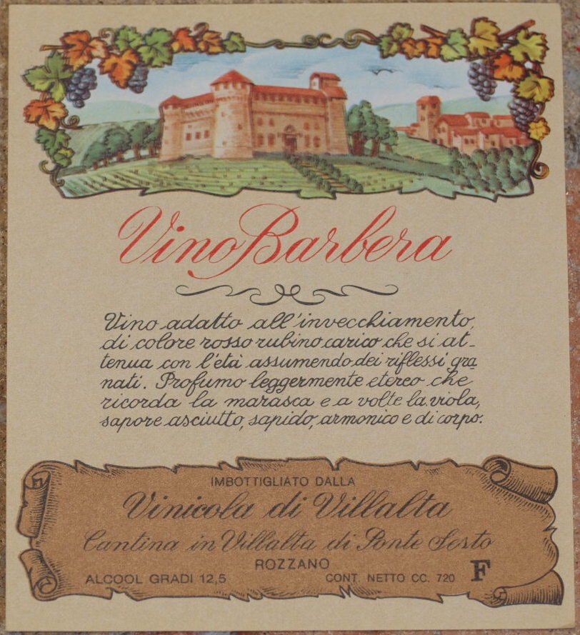 VINO BARBERA IMBOTTIGLIATO DALLA VINICOLA DI VILLALTA CANTINA IN VILLALTA DI PONTE SESTO ROZZANO
