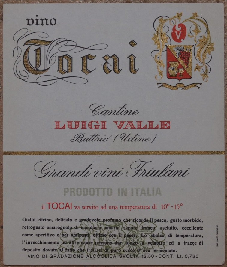 VINO TOCAI CANTINE LUIGI VALLE BUTTRIO (UDINE) GRANDI VINI FRIULANI PRODOTTO IN ITALIA<BR>