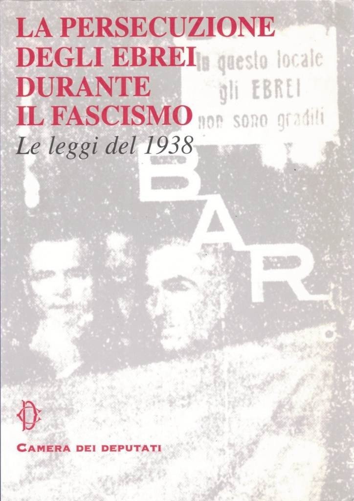 La persecuzione degli ebrei durante il fascismo. Le leggi del 1938, Camera dei Deputati, Roma 1998, pp. XI, 191, 8 c. di tavv. f.t. ill. b.n., cm 24, br. ed. Collana Ricerche e convegni. All’interno del volume, riproduzione facsimilare dei documenti legislativi del 1938. Indice: Luciano Violante, Presentazione – Contro il razzismo (testi di Jacques Chirac, Bill Clinton, Vaclav Havel, Roman Herzog, Oscar Luigi Scalfaro, Ezer Weizman) – Le premesse storiche (Corrado Vivanti, Gli ebrei nella storia d’Italia – Gadi Luzzato Voghera, L’antisemitismo in Europa e in Italia tra le due guerre) – Le leggi del 1938 (Michele Scarfatti, La persecuzione degli ebrei in Italia dalle leggi razziali alla deportazione – Documenti – I decreti-legge – La conversione in legge dei decreti-legge – L’iter parlamentare alla Camera dei Deputati – L’iter parlamentare al Senato del Regno – Circolari e disposizioni amministrative) – Cronologia – Orientamenti bibliografici. Leggere tracce d’uso, ma comunque ben conservato.