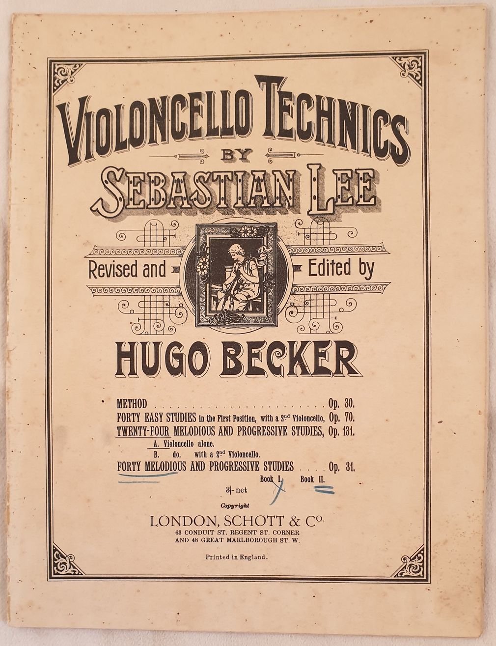 VIOLONCELLO TECHNICS BY SEBASTIAN LEE REVISED AND EDITED BY HUGO BECKER FORTY MELODIOUS AND PROGRESSIVE STUDIES OP. 31