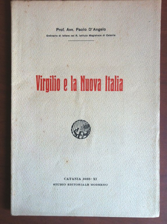 VIRGILIO E LA NUOVA ITALIAProf. Avv. Paolo d'AngeloCatania 1933Ex libris Conte di Val Cismon43 pagine - formato 15x22 cmin ottime condizioni (90 g) E13990