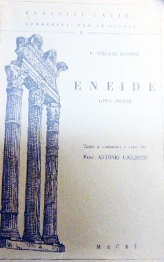Virgilio, Eneide. Libro decimo, testo e commento a cura del prof. Antonio Gigliotti, Luigi Macrì Editore, Bari 1939, pp. XIX, 93, cm 23, br. ed. Collana Classici latini commentati per le scuole, n. 3. Tracce d’uso alla brossura, con minimi strappetti al dorso e uno strappetto alla copertina, ma senza mancanze, per il resto esemplare ben conservato. Molto raro.