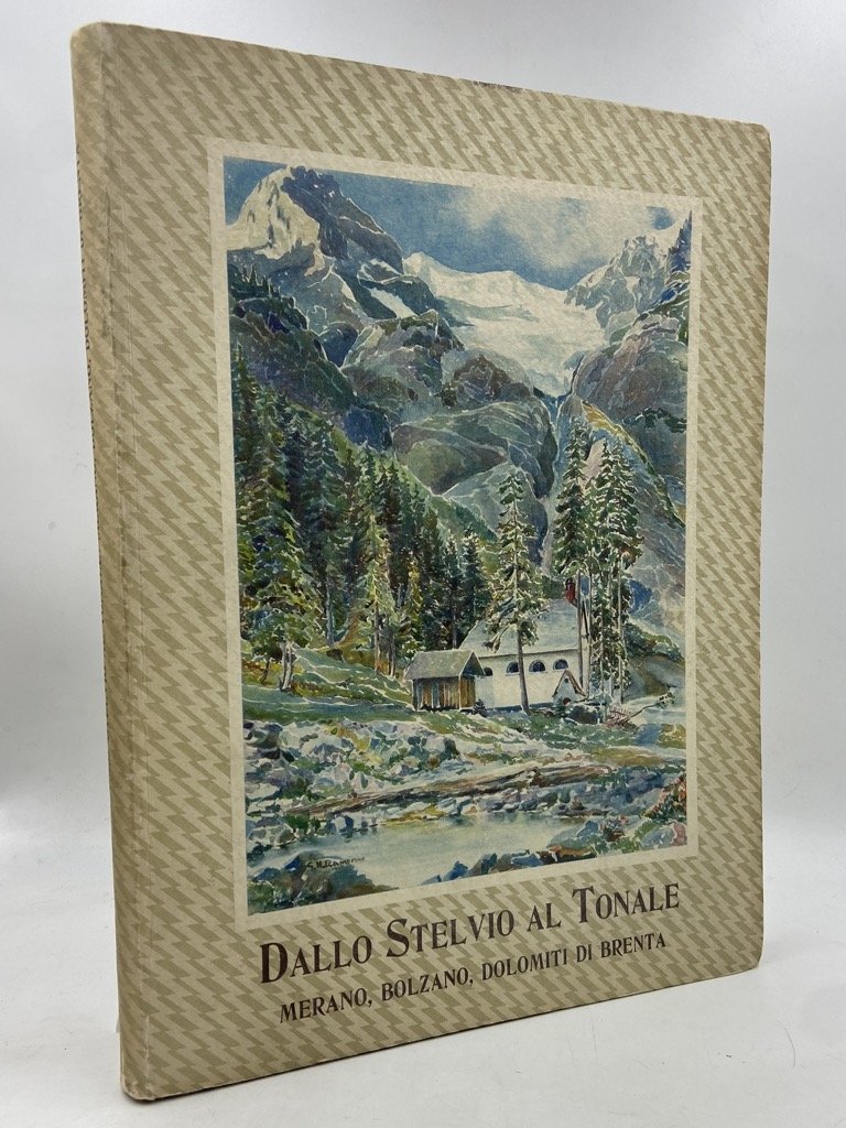 Cartonato editoriale illustrato, cm 33x24, pp 112 (4), 180 illustrazioni fotografiche in nero e 11 tavole a colori, protette da velina, da acquerelli di Nino Ramorino. Bel volume della serie Visioni Italiche, curata da Cesare Rossi e Marco Boroli per la Compagnia Italiana pel Turismo; l’opera è divisa in quattro sezioni: Dalla Valtellina alla Val Venosta, per lo Stelvio; L’alta Valle dell’Adige, Merano e Bolzano; La Mendola, la Val di Non, la Val di Sole; Dalle Dolomiti di Brenta alla Val Camonica, per il Tonale. Le fotografie, riprodotte in brillante rotocalco in tono blu, sono di Micheletti, Baehrendt, Trinca, Peter, Ferrari, Garbari, Gugler, Muller, Giumelli, Pasta, Rossi.