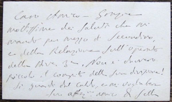 Visitkarte mit einigen eigenh. Zeilen und U. ("Q. Sella") verso.