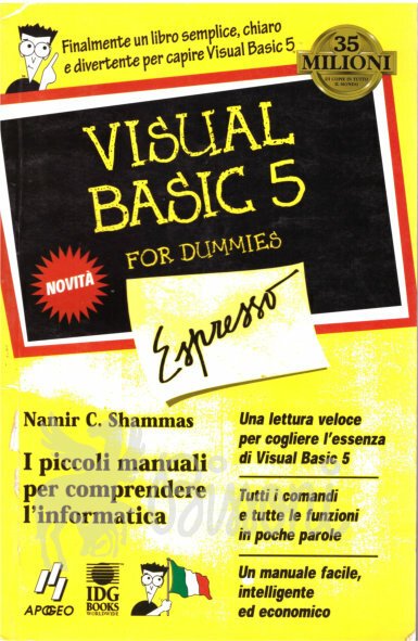- NAMIR C. SHAMMAS VISUAL BASIC 5 FOR DUMMIES - ESPRESSO 13.5 x 21 cm 227 pp Volume intatto, non letto, in ottime condizioni 10.00 1573 9788873033814 MILANO APOGEO 1997 13.5 x 21 cm 255 Volume intatto, non letto, in ottime condizioni BROSSURA 14/01/2021 227 pp DA INVIARE