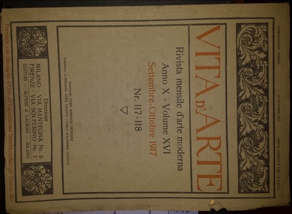 Vita d'arte: rivista mensile d'arte moderna. Anno X. Volume XVI. Settembre -Ottobre 1917. Nr 117-118