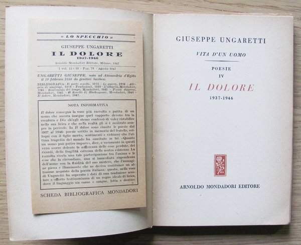 VITA D'UN UOMO - VOL. V IL DOLORE 1937-1946. Collana I Poeti dello Specchio