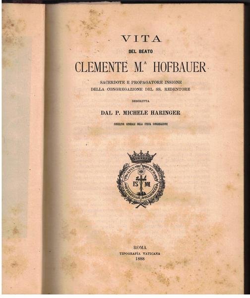 Vita del beato Clemente M. Hofbauer sacerdote e propagatore insigne della Congregazione del SS. Redentore