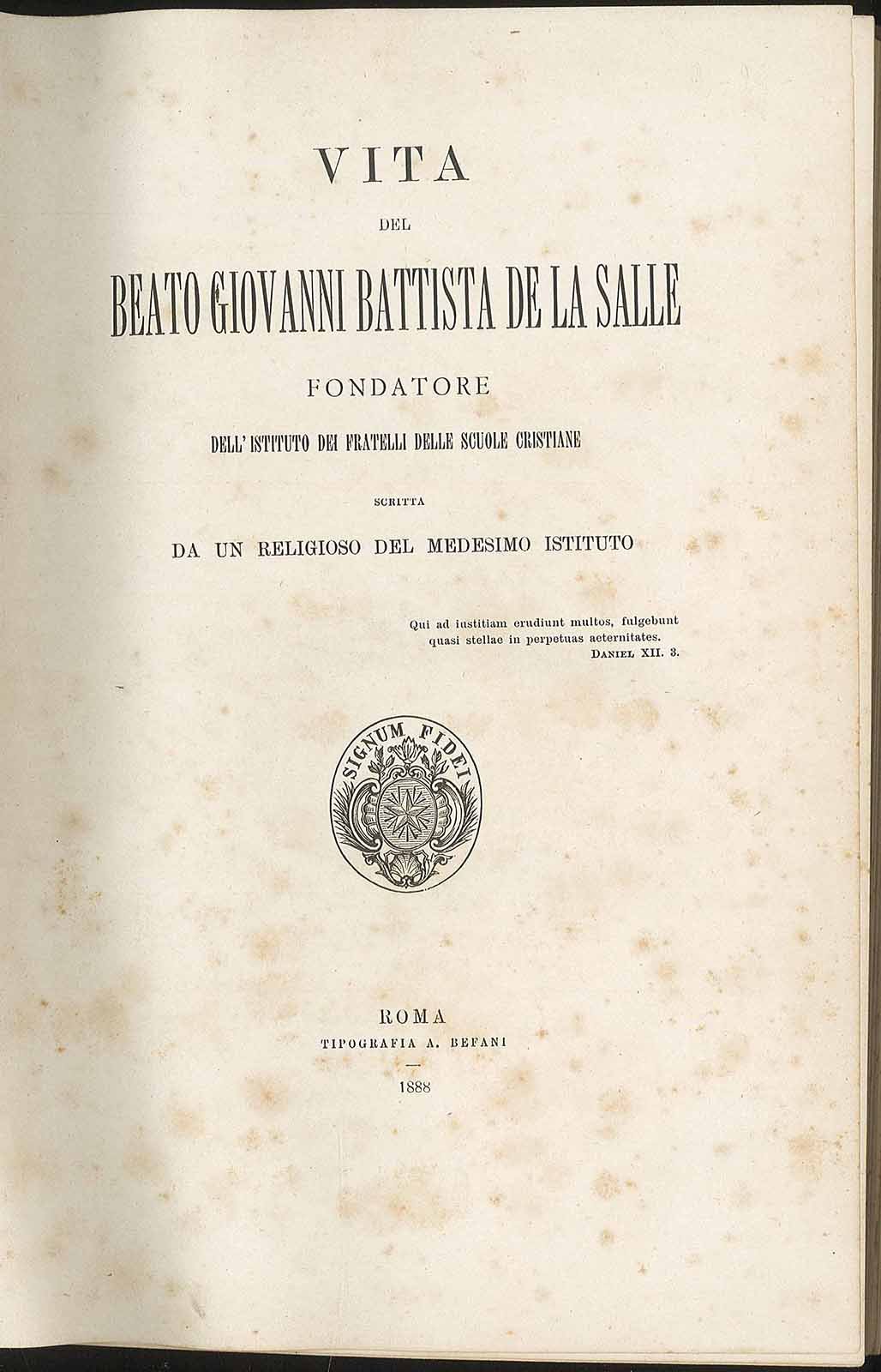 Vita del Beato Giovanni Battista De la Salle fondatore dell'istituto dei fratelli delle scuole cristiane