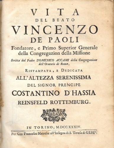 Vita del beato Vincenzo de Paoli Fondatore, e Primo Superior Generale della Congregazione della Missione